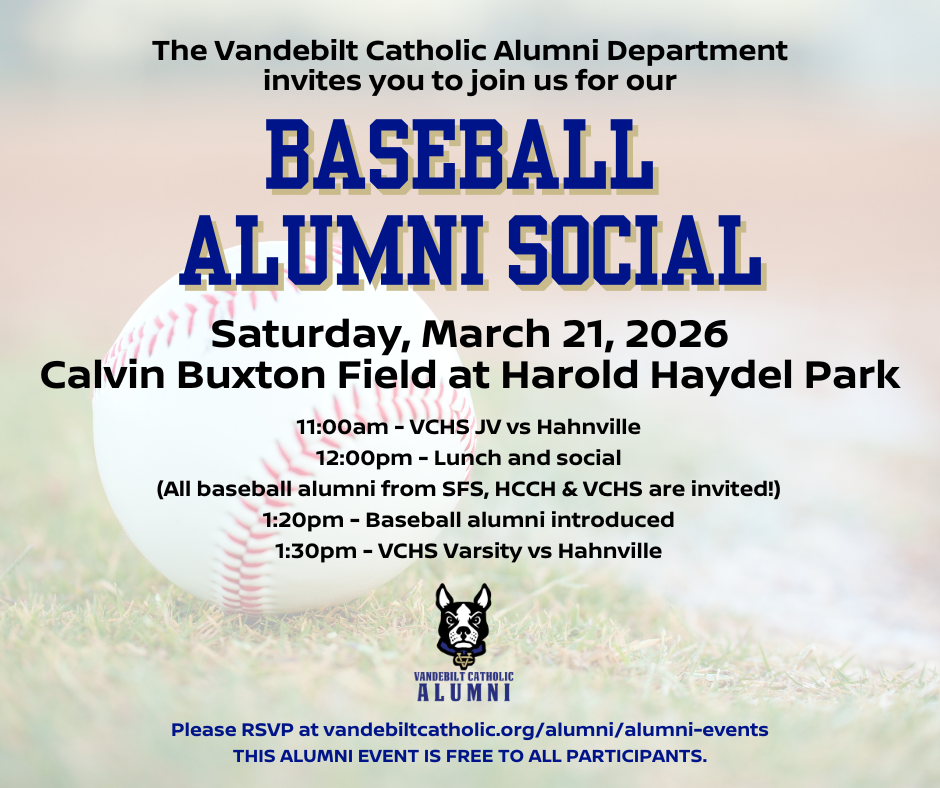 Join our Alumni Baseball for a social and recognition on the field during a Saturday tournament! This event is FREE to all alumni.