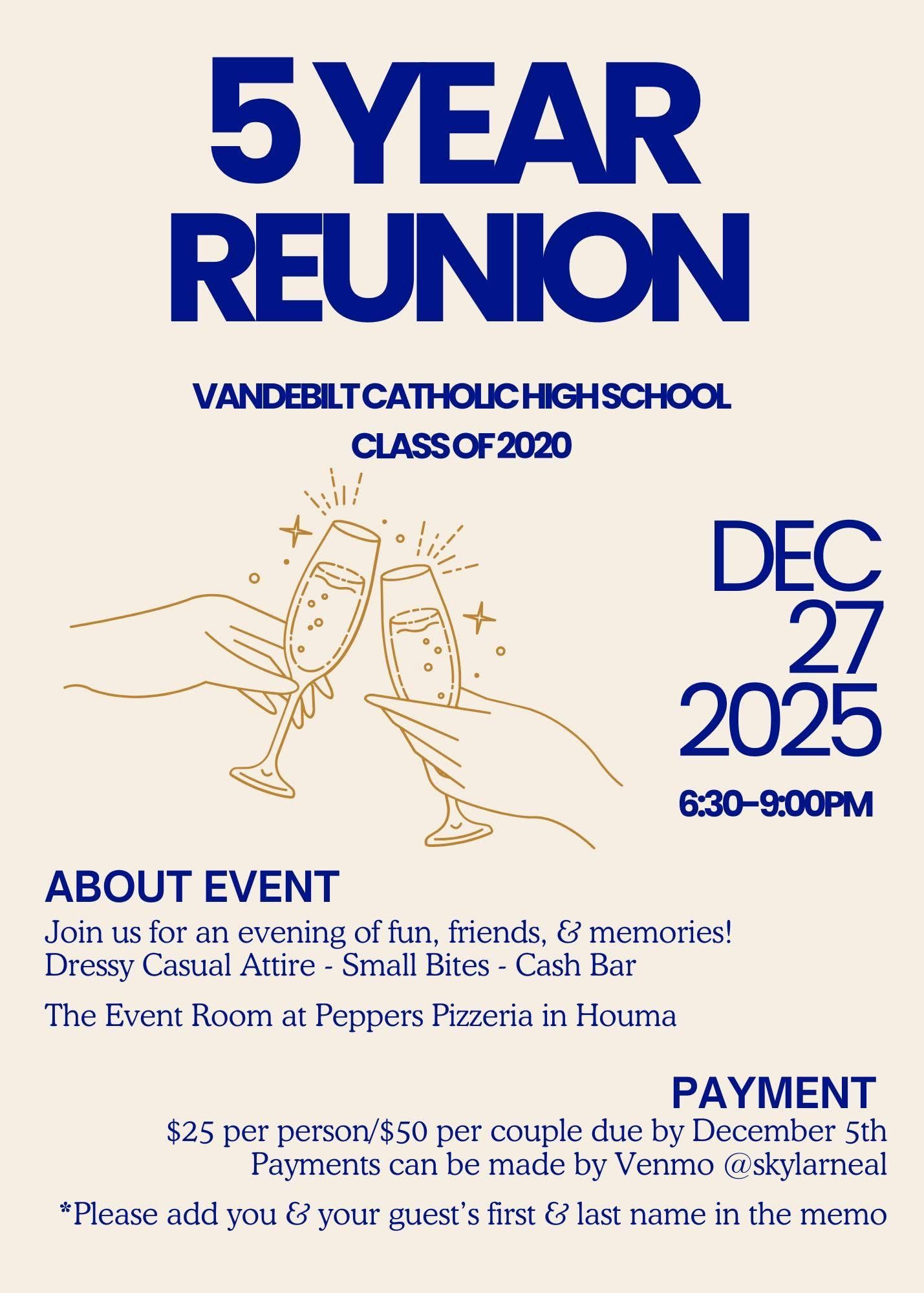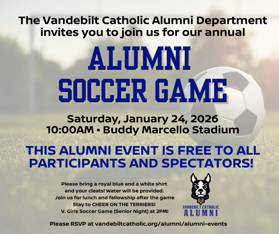 Be sure to follow us on social media – Facebook: Vandebilt Catholic Alumni Association and Instagram: vchsalumniassociation