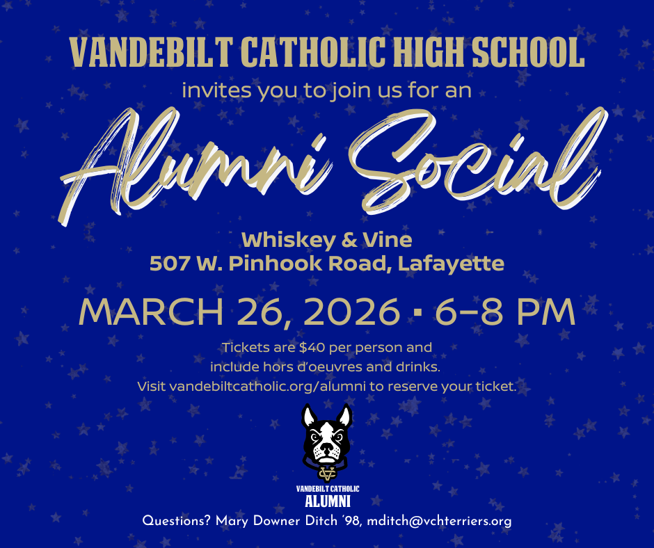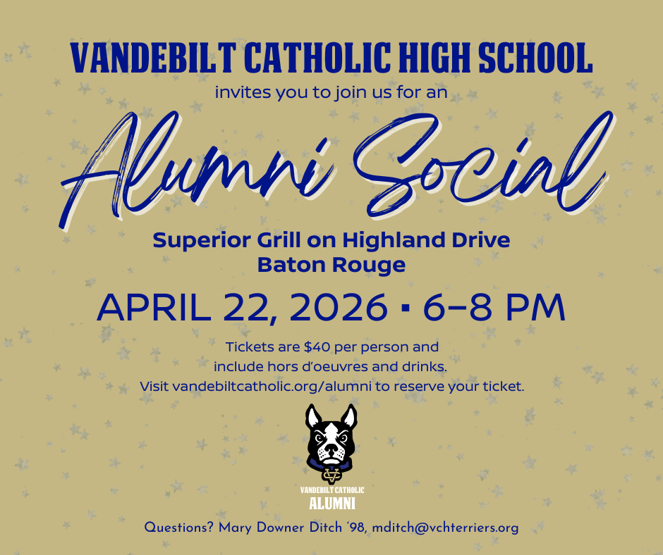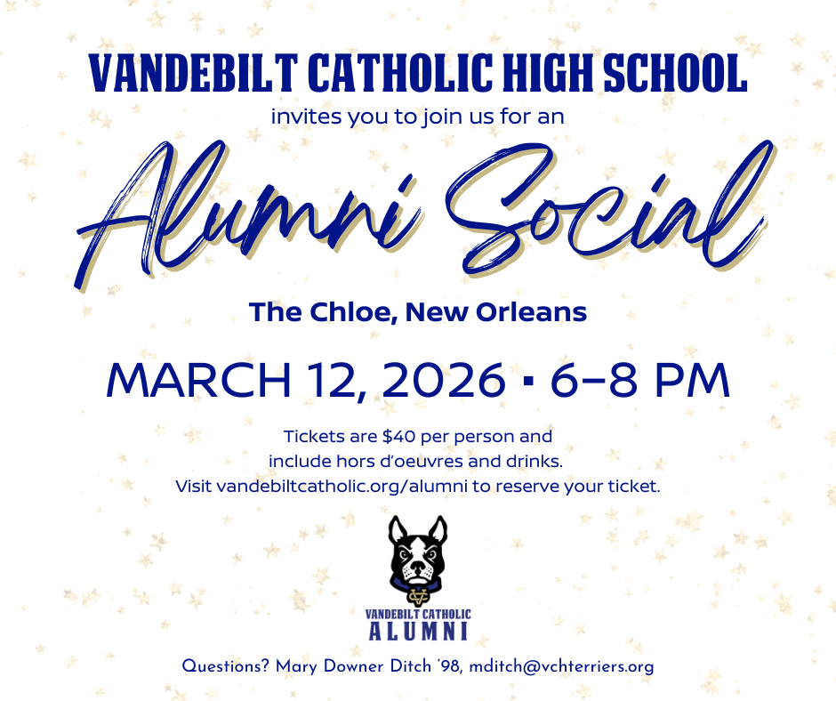 Let's connect in your hometown, catch up on things, and celebrate the bond that makes our Vandebilt Catholic family special. Our planned 2026 Alumni Social sites include New Orleans, Lafayette and Baton Rouge! See you soon, Terriers!